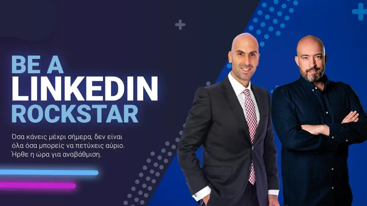 Με το Be A LinkedIn Rockstar από το Notify Show, αποκτάς 3 ώρες στρατηγικού περιεχομένου, σχεδιασμένο για να σε βοηθήσει να αξιοποιήσεις το LinkedIn πραγματικά ως εργαλείο επαγγελματικής επιτυχίας — όχι απλώς ως μέσον για να έχεις μια ψηφιακή παρουσία. Το course έχει δημιουργηθεί από τον Κωνσταντίνο Κίντζιο, με το Νο8 πιο επιδραστικό LinkedIn profile στην Ελλάδα και Νο19 παγκοσμίως στην κατηγορία Career Coaching, και τον Σπύρο Ανδριανό, με το Νο11 πιο επιδραστικό profile στην Ελλάδα και Νο4 στην κατηγορία Business.