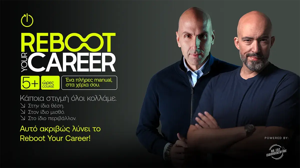 Αν σκέφτεσαι να προχωρήσεις σε μια νέα επαγγελματική πορεία, το Reboot Your Career σε ωθεί να πάρεις ξεκάθαρες αποφάσεις και να σχεδιάσεις τη μετάβαση με στρατηγικό πλάνο. Αν νιώθεις ότι ήρθε η στιγμή να πάρεις τον έλεγχο της καριέρας σου, ξεκίνα σήμερα και ζήσε τη μεγαλύτερη επαγγελματική σου μεταμόρφωση.